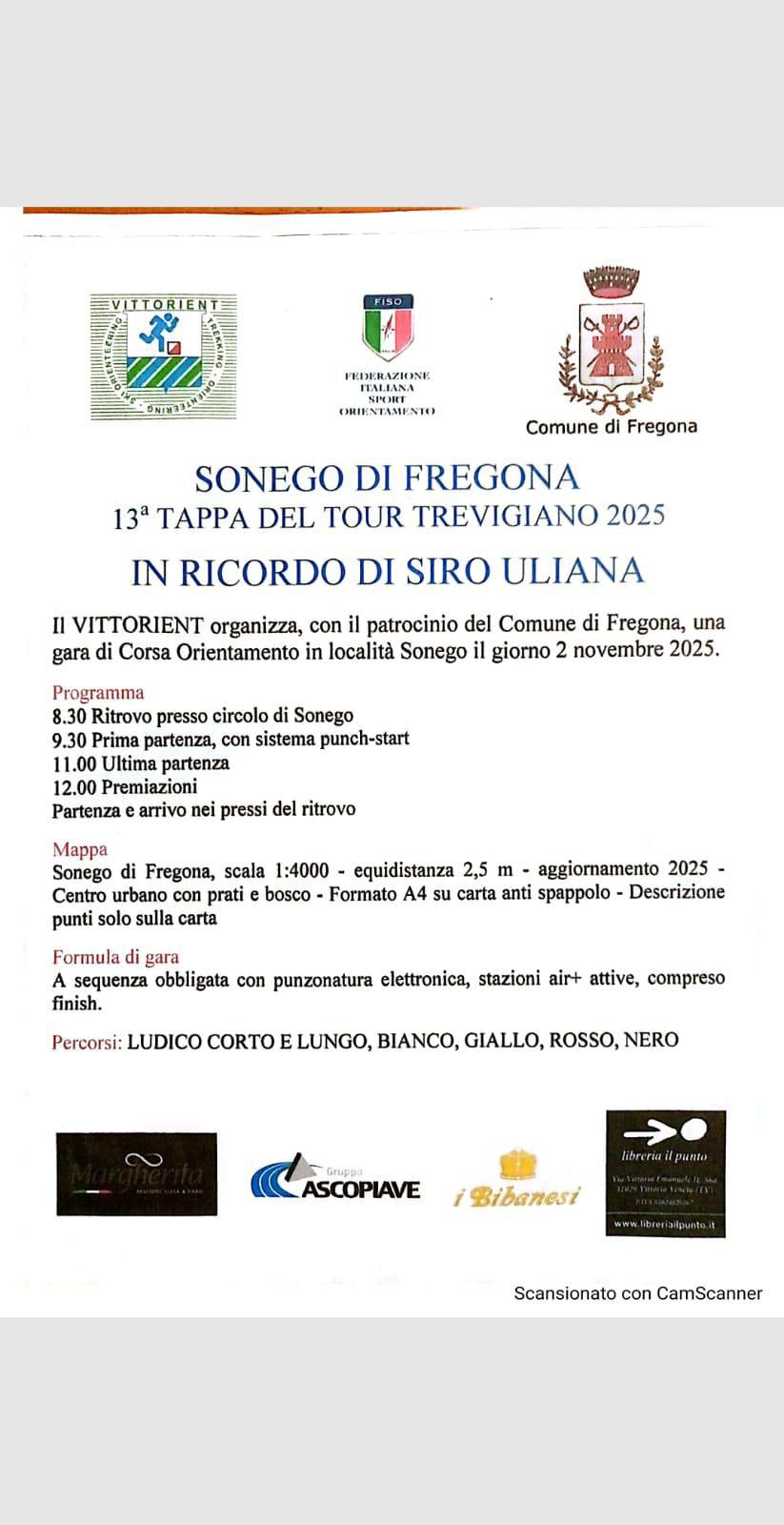 Il gruppo Vittorient, con il patrocinio del Comune di Fregona, organizza una gara di corsa orientamento valida come 13ª tappa del Tour Trevigiano 2025, dedicata al ricordo di Siro Uliana.