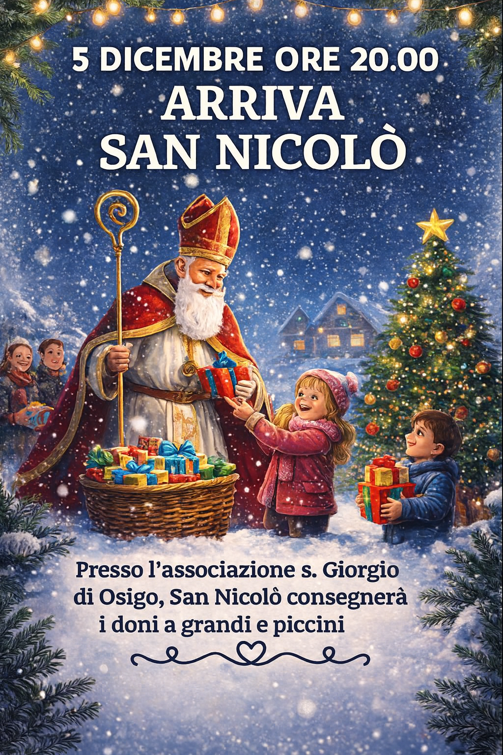Presso l’associazione S. Giorgio di Osigo, grandi e piccini potranno vivere l’emozione dell’arrivo di San Nicolò, il santo amico dei bambini.