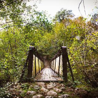 Caratteristiche: Il percorso presenta passarelle in legno che attraversano forre, antri e marmitte, con pareti rocciose scavate dall'uomo lasciando colonne naturali di sostegno.
